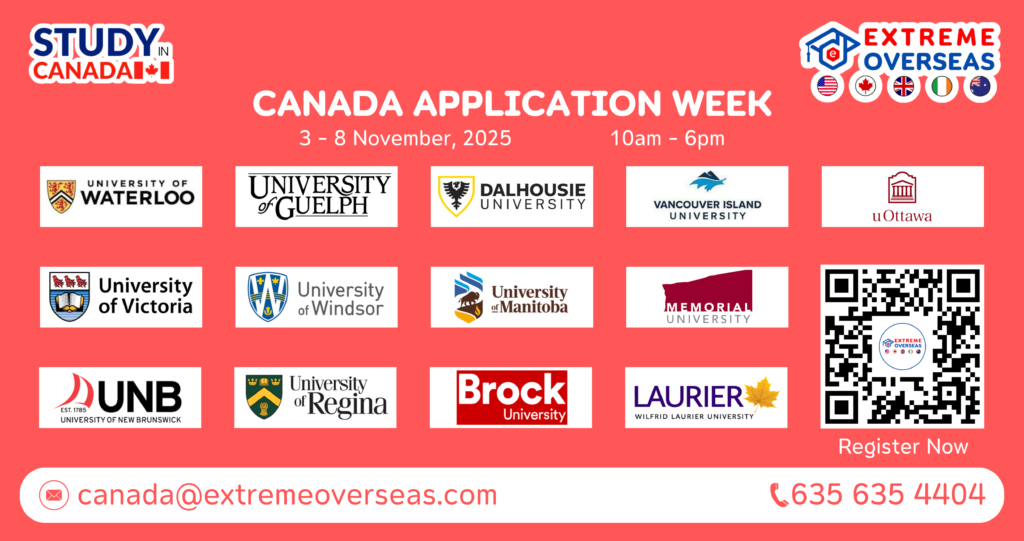 You are warmly invited to attend our CANADA Application Week, scheduled from the 3rd to 8th of November 2025. The event will include services like early admission, lower initial deposits, educational loan guidance, accommodation planning, scholarships, and cooperative education programs for students. Our knowledgeable counselors will offer personalized advice on studying in CANADA. Do not miss this chance to expedite your admission process.