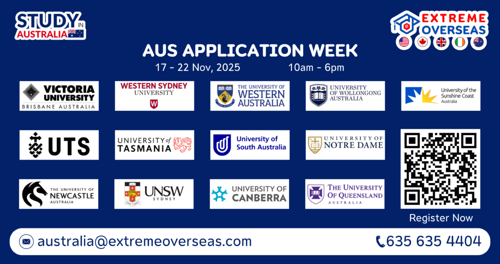 You are cordially invited to participate in our AUSTRALIA Application Week, scheduled to take place on 17th to 22nd November 2025. The event will feature services such as early admission, guidance on educational loans, accommodation planning, scholarships, and cooperative education programs for students. Our experienced counsellors will provide personalized advice on studying in AUSTRALIA. Please do not miss this opportunity to expedite your admission process.