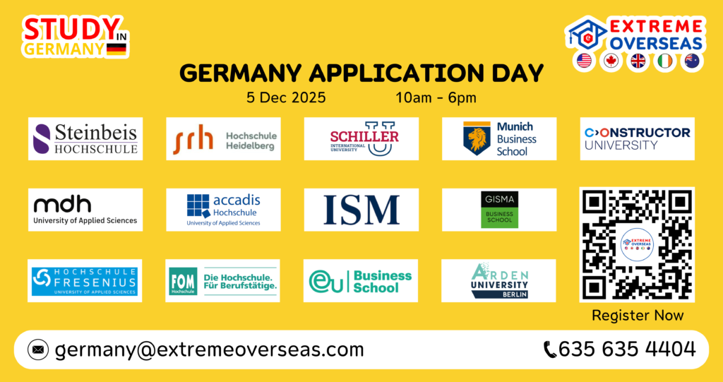 You are formally invited to attend our Germany Application Day, taking place on 5th Dec 2025. The event will feature a range of services, including early admission, guidance on educational loans, accommodation planning, scholarships, and cooperative education programs for students. Our expert counselors will provide tailored advice on studying in Germany. Do not miss this opportunity to expedite your admission process.