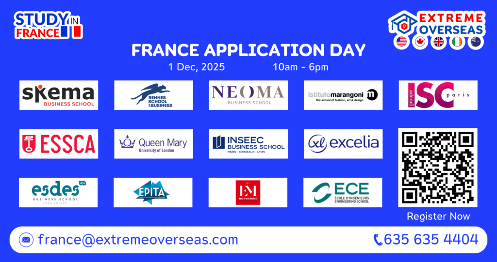 We are pleased to invite you to the FRANCE Application Day scheduled for 1st December, 2025. The event includes services like early admission, counseling on educational loans, accommodation arrangements, scholarships, and cooperative education programs for students. Our expert counselors are ready to deliver tailored advice on pursuing studies in FRANCE. Kindly make sure to seize this opportunity to accelerate your admission process.