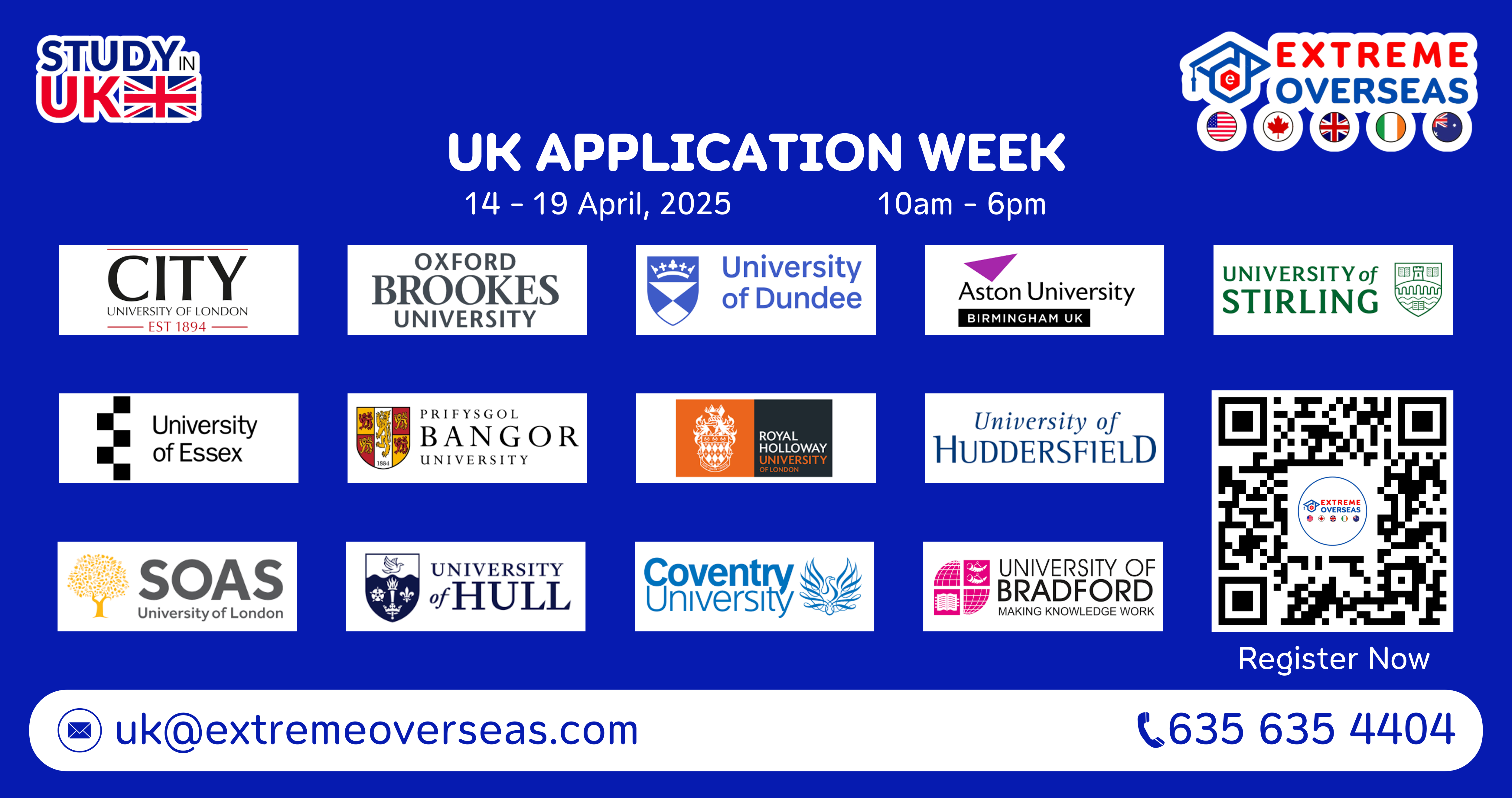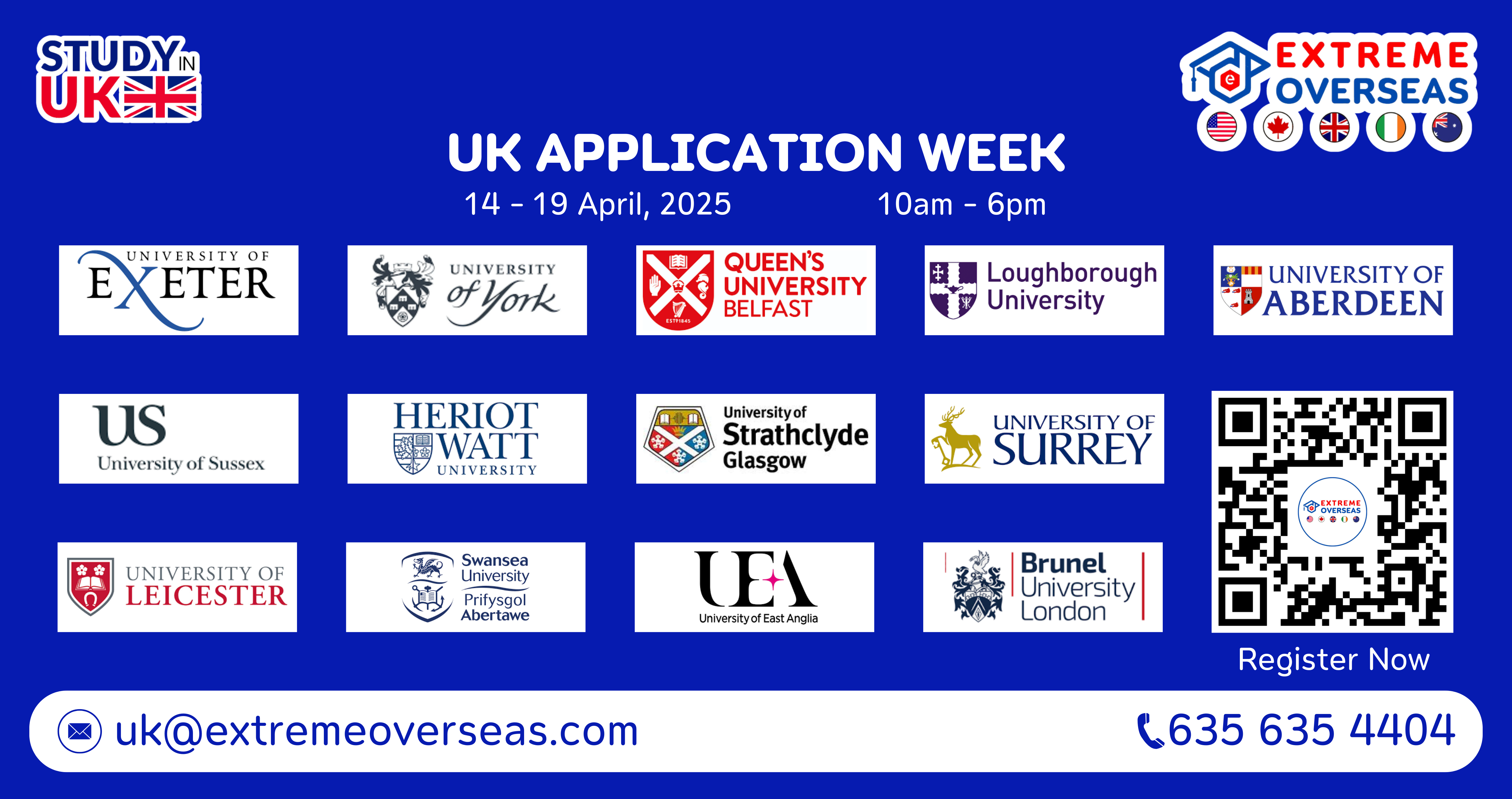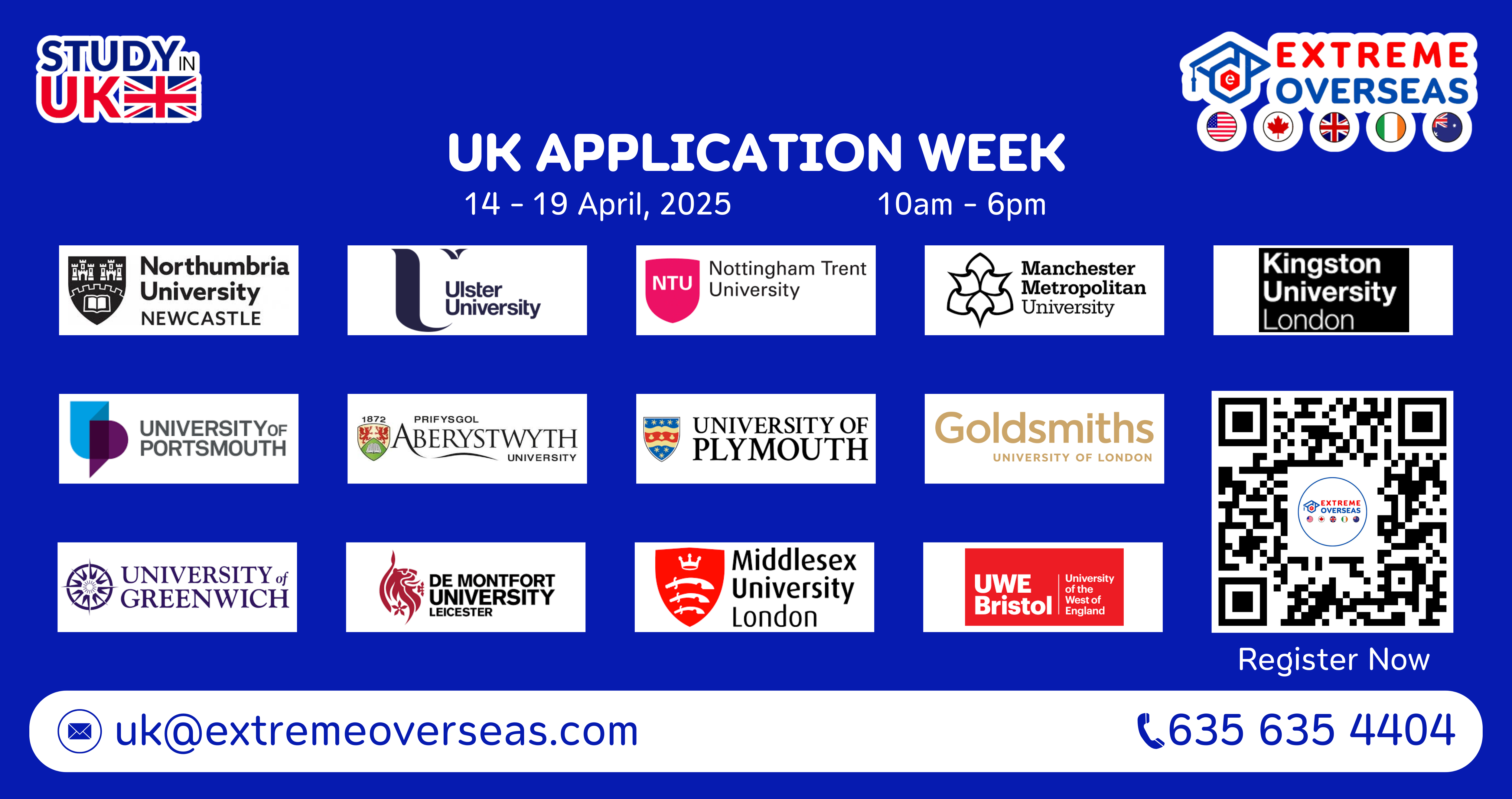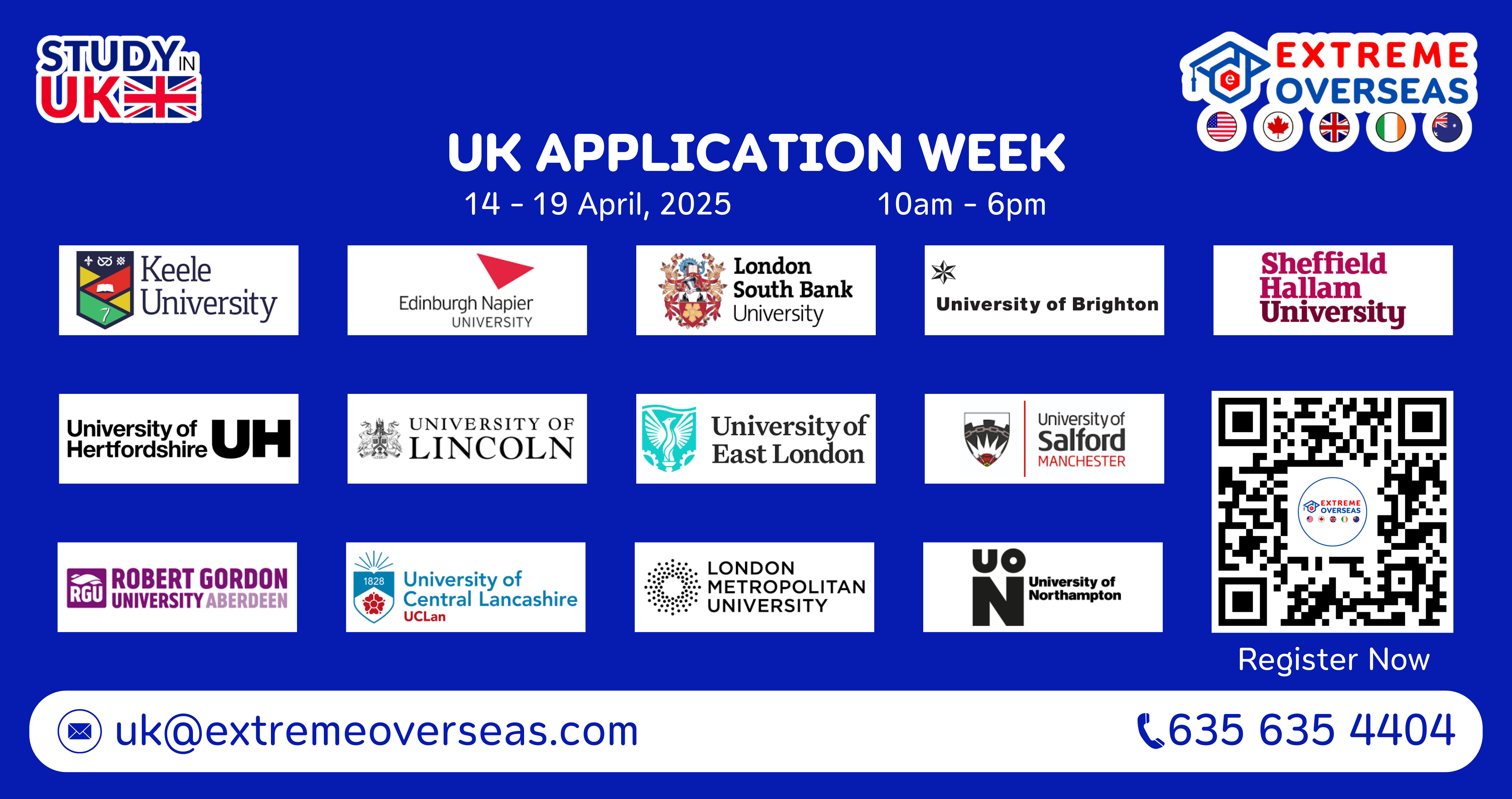 We extend a cordial invitation to join us for our UK Application Week on Oct 20th – 25th, 2025. This event features services such as early admission, reduced deposits for a Confirmation of Acceptance for Studies (CAS), educational loan assistance, accommodation arrangements, scholarships, and internships for students. Our experienced counselors will provide personalized guidance on pursuing education in the UK. Do not miss this opportunity for an expedited admission process.