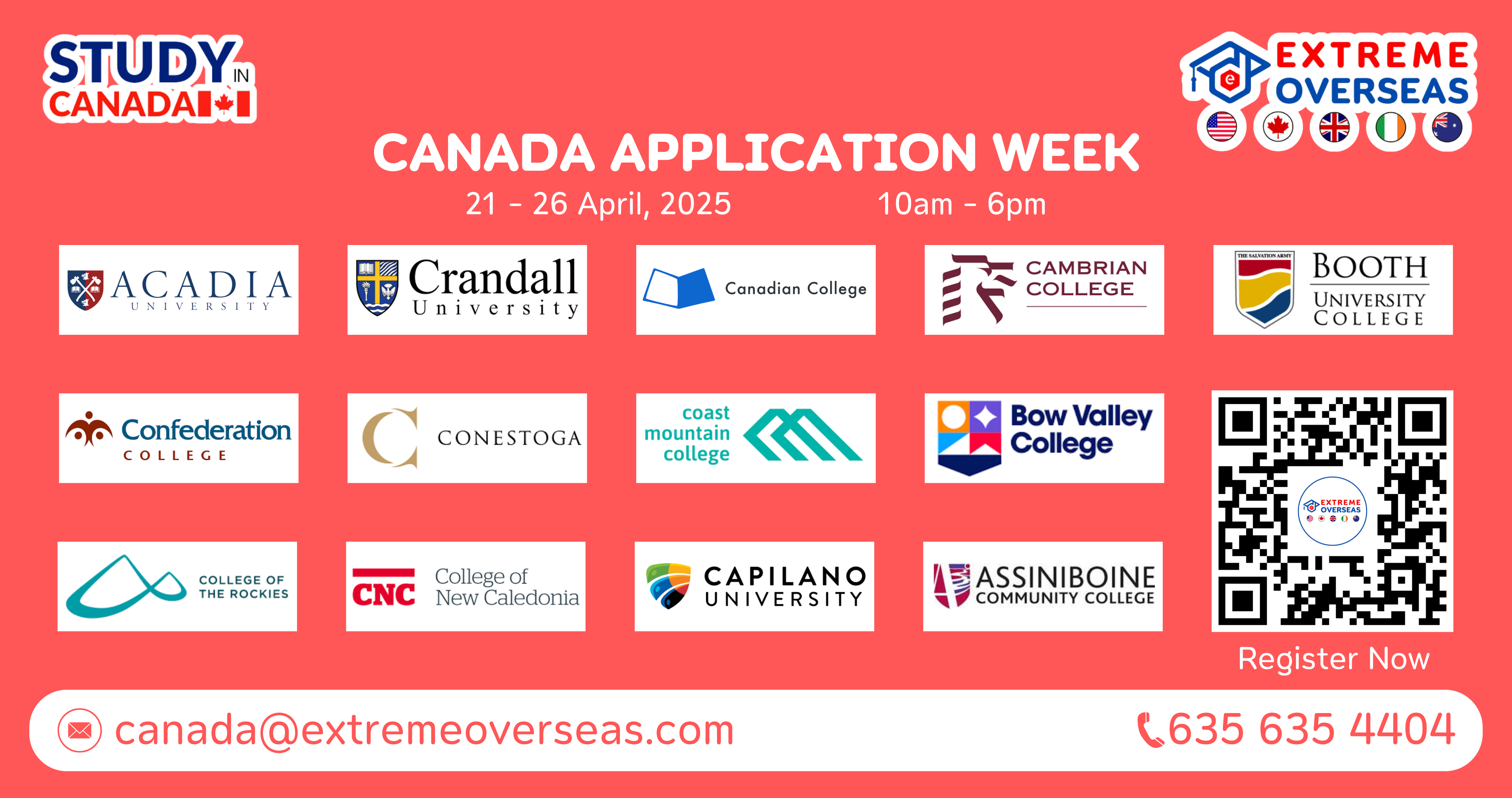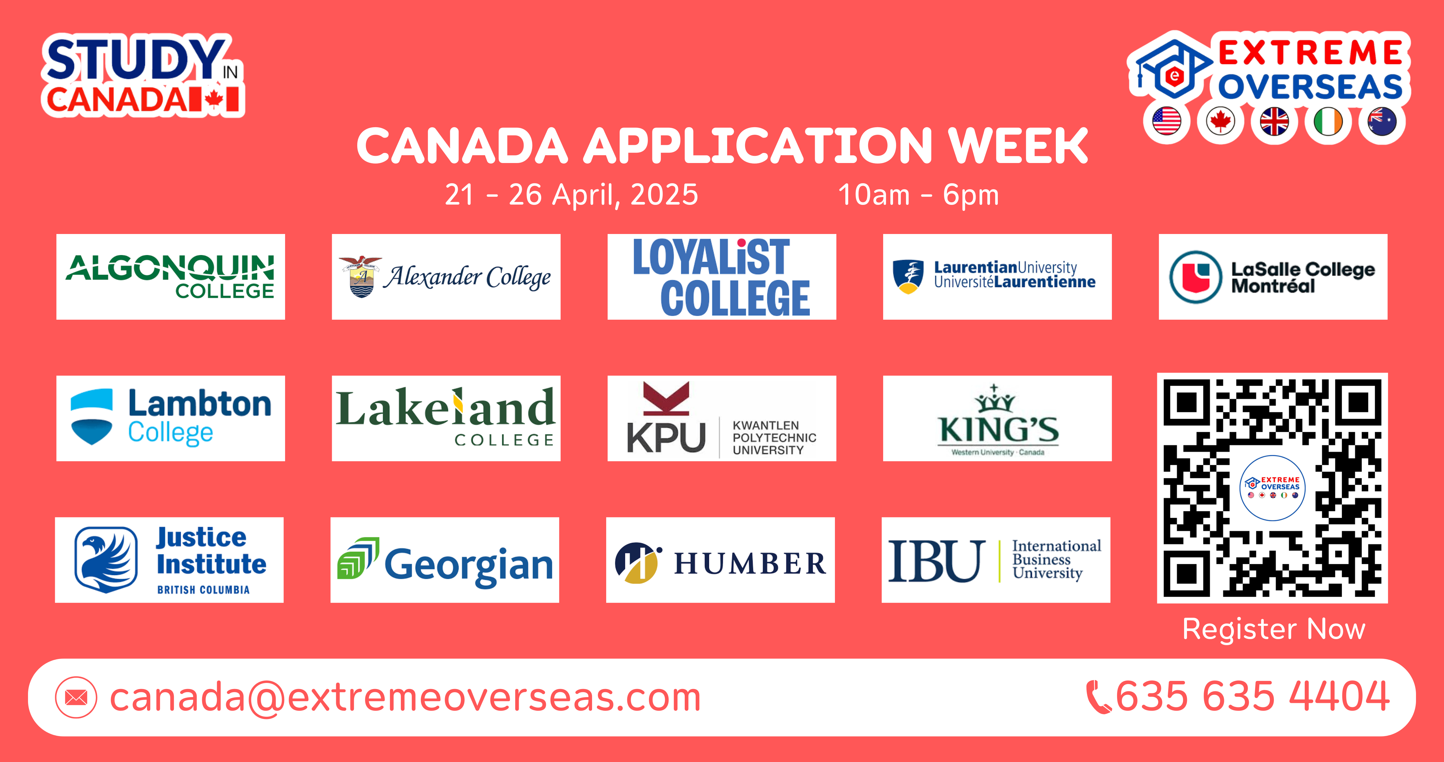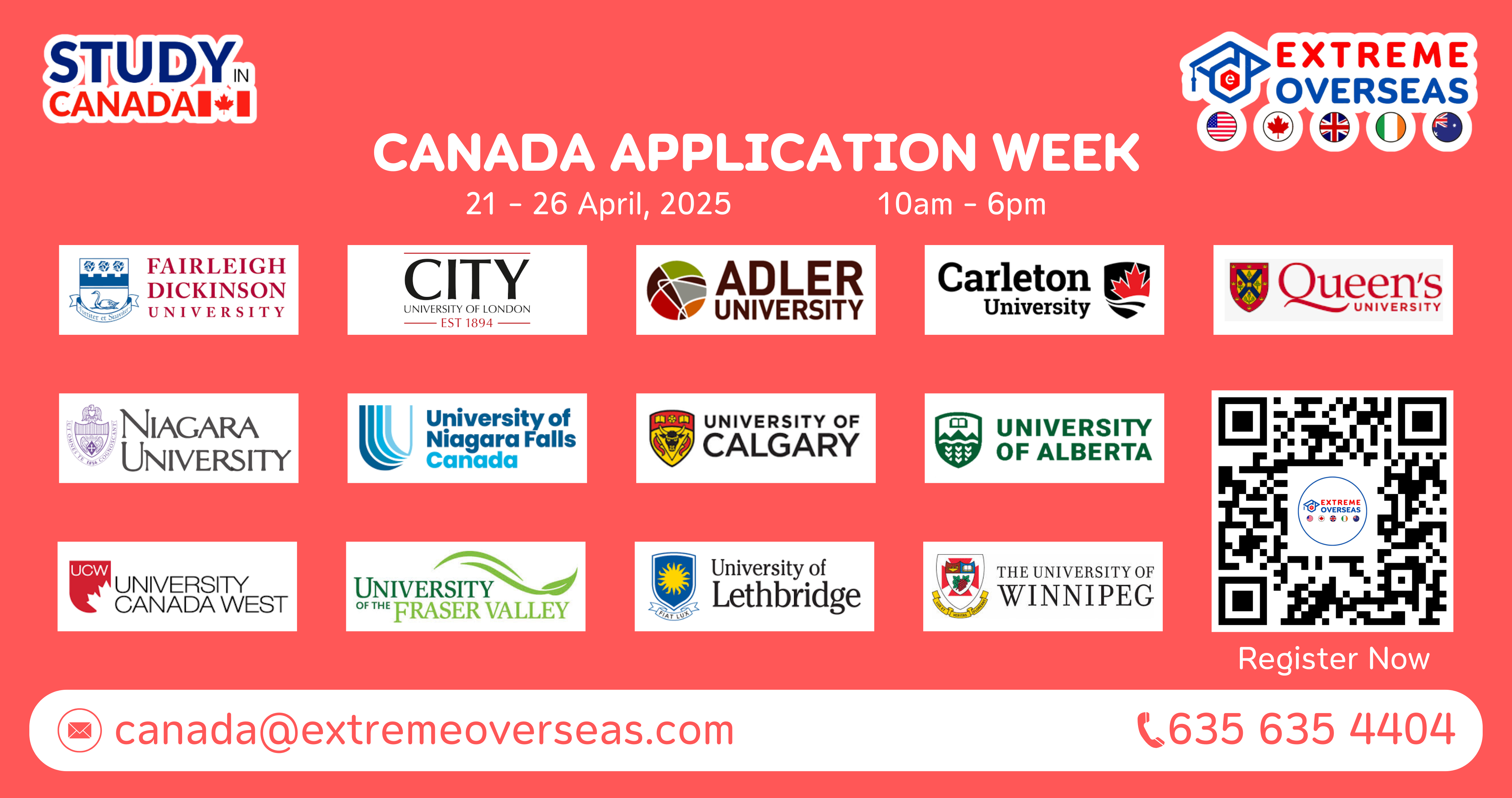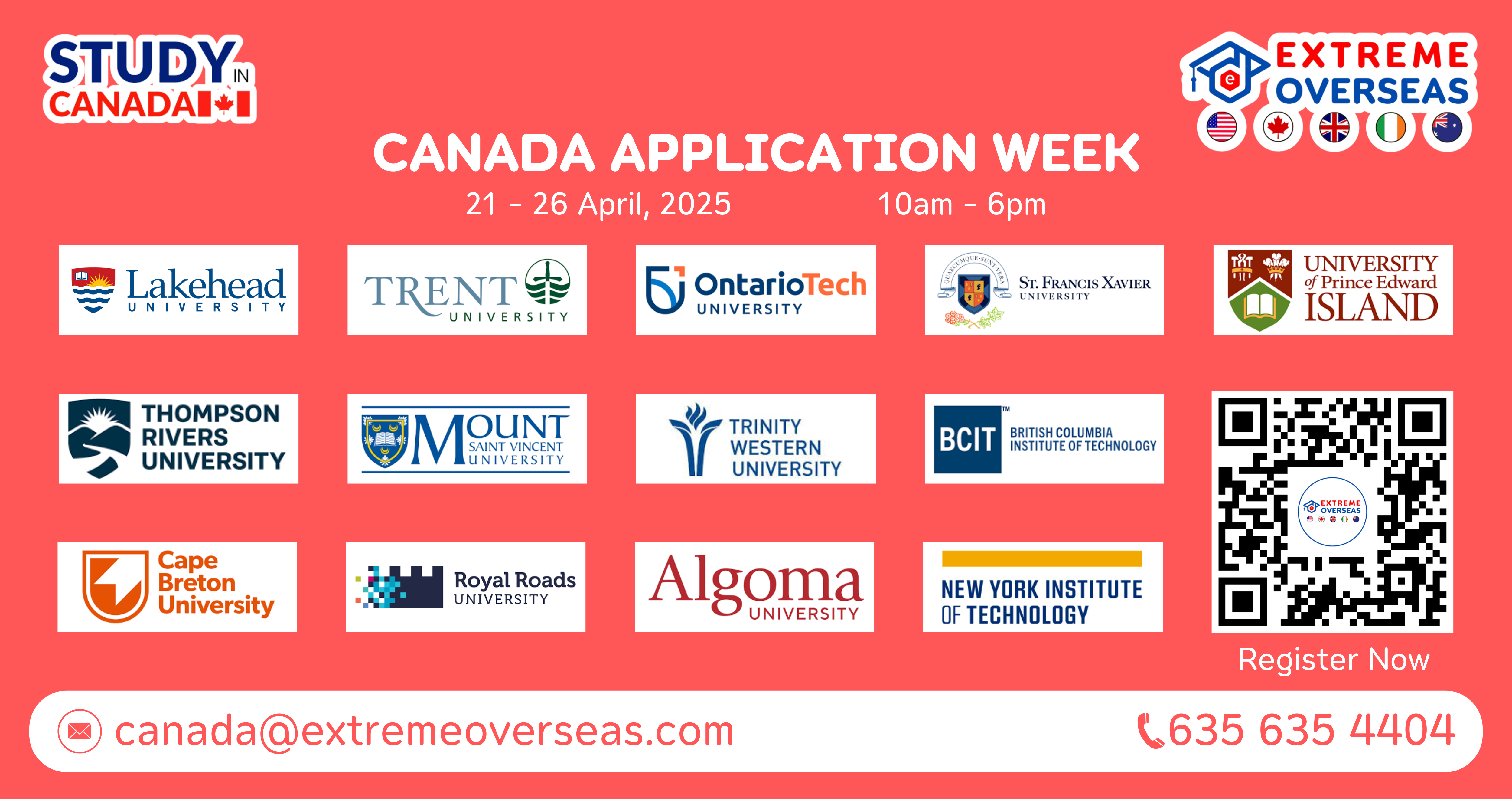 You are warmly invited to attend our CANADA Application Week, scheduled from the 3rd to 8th of November 2025. The event will include services like early admission, lower initial deposits, educational loan guidance, accommodation planning, scholarships, and cooperative education programs for students. Our knowledgeable counselors will offer personalized advice on studying in CANADA. Do not miss this chance to expedite your admission process.
